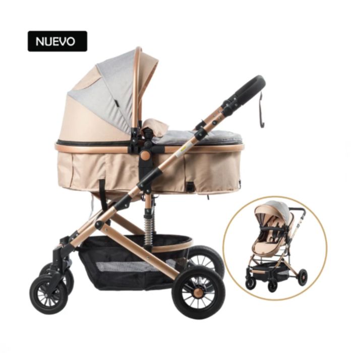 Este coche moisés es ajustable en 3 posiciones, lo que permite adaptarlo a las necesidades del bebé a medida que crece. Diseñado para bebés desde el nacimiento hasta los 36 meses, garantiza un uso prolongado y práctico. Además, su estructura de aluminio dorado le da un toque distintivo y elegante.