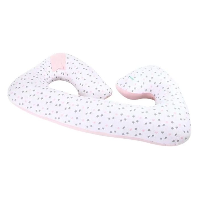 Además, su funda de 100% algodón es hipoalergénica y removible, lo que facilita su limpieza y asegura la comodidad tanto de mamá como de bebé. Con medidas de 270 cm de largo, 63 cm de circunferencia y 17 cm de alto, el Cojín Multifuncional Rosado Estrellas se adapta a tus necesidades y se convierte en un elemento esencial en tu hogar.