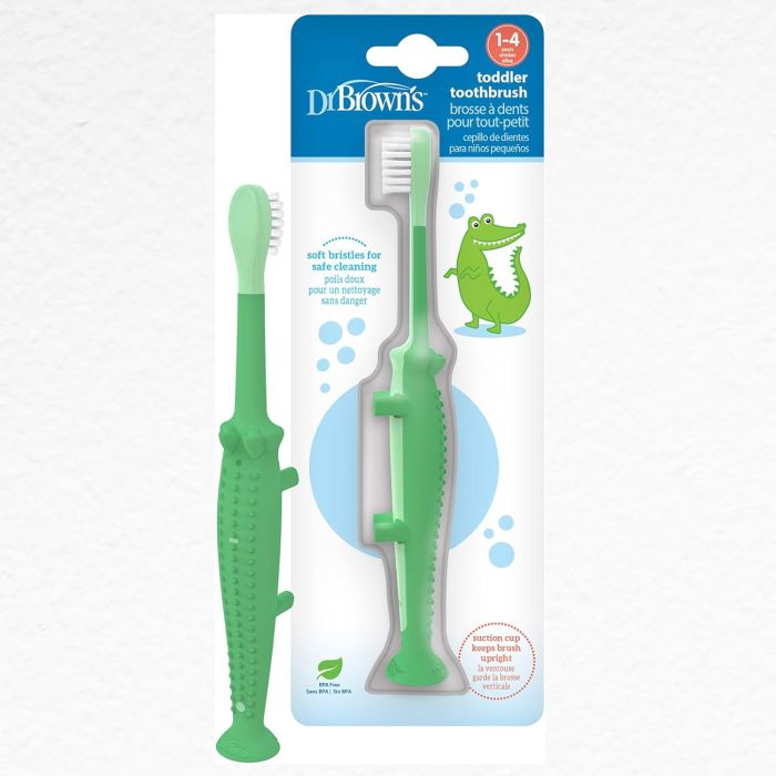 Descubre el divertido y práctico Cepillo de Dientes Dr. Brown's Cocodrilo, diseñado especialmente para bebés y niños pequeños de 1 a 4 años. Este adorable cepillo no solo es un accesorio de higiene bucal, sino también un compañero en el desarrollo de buenos hábitos desde temprana edad.