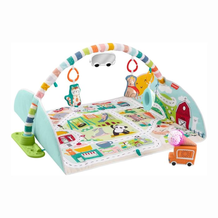 El Gimnasio de Lujo Megaciudad de Fisher-Price es el compañero ideal para el desarrollo de tu bebé. Diseñado para ofrecer un entorno de juego estimulante y divertido, este gimnasio cuenta con más de un metro de espacio para que tu pequeño explore y se divierta mientras fortalece sus habilidades motoras.