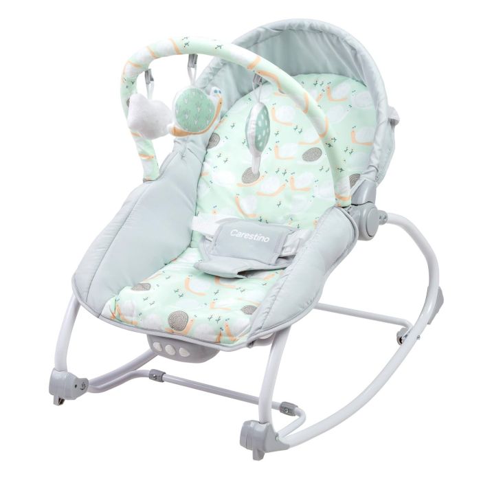 Un atractivo adicional es su barra de juegos desmontable con peluches colgantes, que estimulan la visión y el tacto del bebé, promoviendo su curiosidad y desarrollo cognitivo de manera lúdica. En resumen, la Mecedora Carestino Verde Agua es una inversión en el bienestar y la felicidad de tu pequeño, asegurando momentos de descanso y diversión en un solo producto.