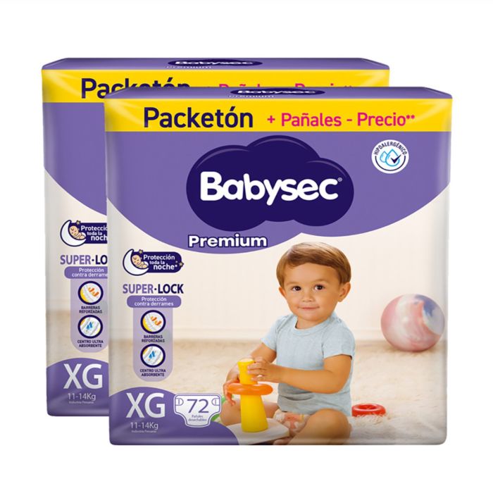 Pack Pañal Babysec Packetón Premium Talla XG 72un x2