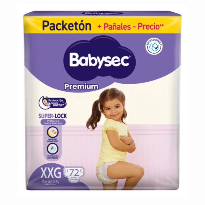 Pack Pañal Babysec Packetón Premium Talla XXG 72un x2