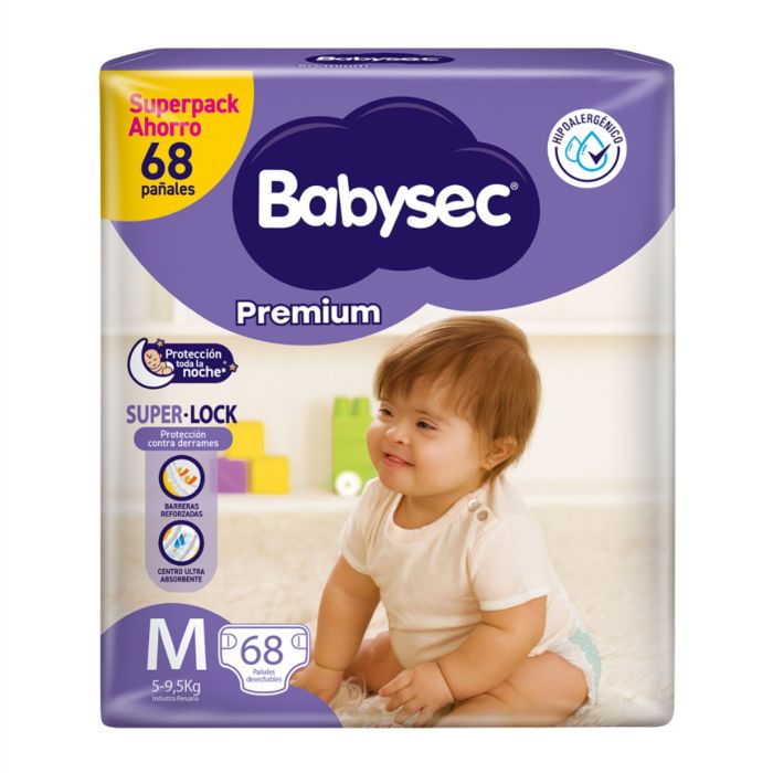 Pañal Babysec Premium Super Mega Talla M - Paquete 68 UN