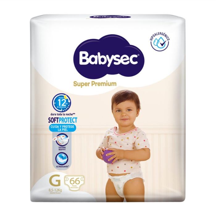 Pañal Super Premium BABYSEC Talla G Paquete 66un