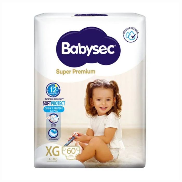 Pañal Super Premium BABYSEC Talla XG Paquete 60un