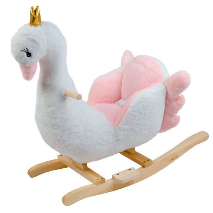 ¡Bienvenida al mágico mundo del Peluche Mecedor +12 meses Cisne Blanco de Carestino! Este encantador compañero de aventuras ha sido diseñado especialmente para brindar a tu bebé una experiencia de juego segura, afectiva y estimulante. Su estructura robusta de madera asegura estabilidad, permitiendo que tu pequeño disfrute de momentos de balanceo con total confianza.