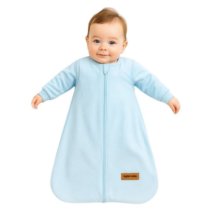El Saquito de Dormir 2 en 1 Celeste Maternelle ofrece abrigo y seguridad. Con brazos desmontables y material suave, se adapta a cualquier clima, favoreciendo un sueño tranquilo y cómodo para tu bebé.